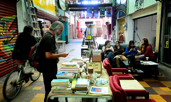 Tenants of Pasaje Gómez, a group of buildings with a plastic roof, include galleries, bookstores and cafes.